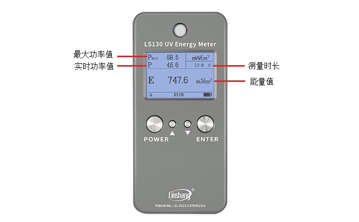 2.真正智能的UV能量計(jì),可同時(shí)檢測(cè)UV強(qiáng)度與能量。智能統(tǒng)計(jì)功率實(shí)時(shí)值、功率最大值、能量值及測(cè)量時(shí)長,通過測(cè)量時(shí)長可精確了解UV固化時(shí)間的長短。