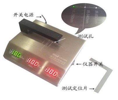 ??? 2:將被測試物放入測試位置。三個顯示器分別顯示被測物對紅外850nm,紅外線940nm和可見光550nm波長的透過率。